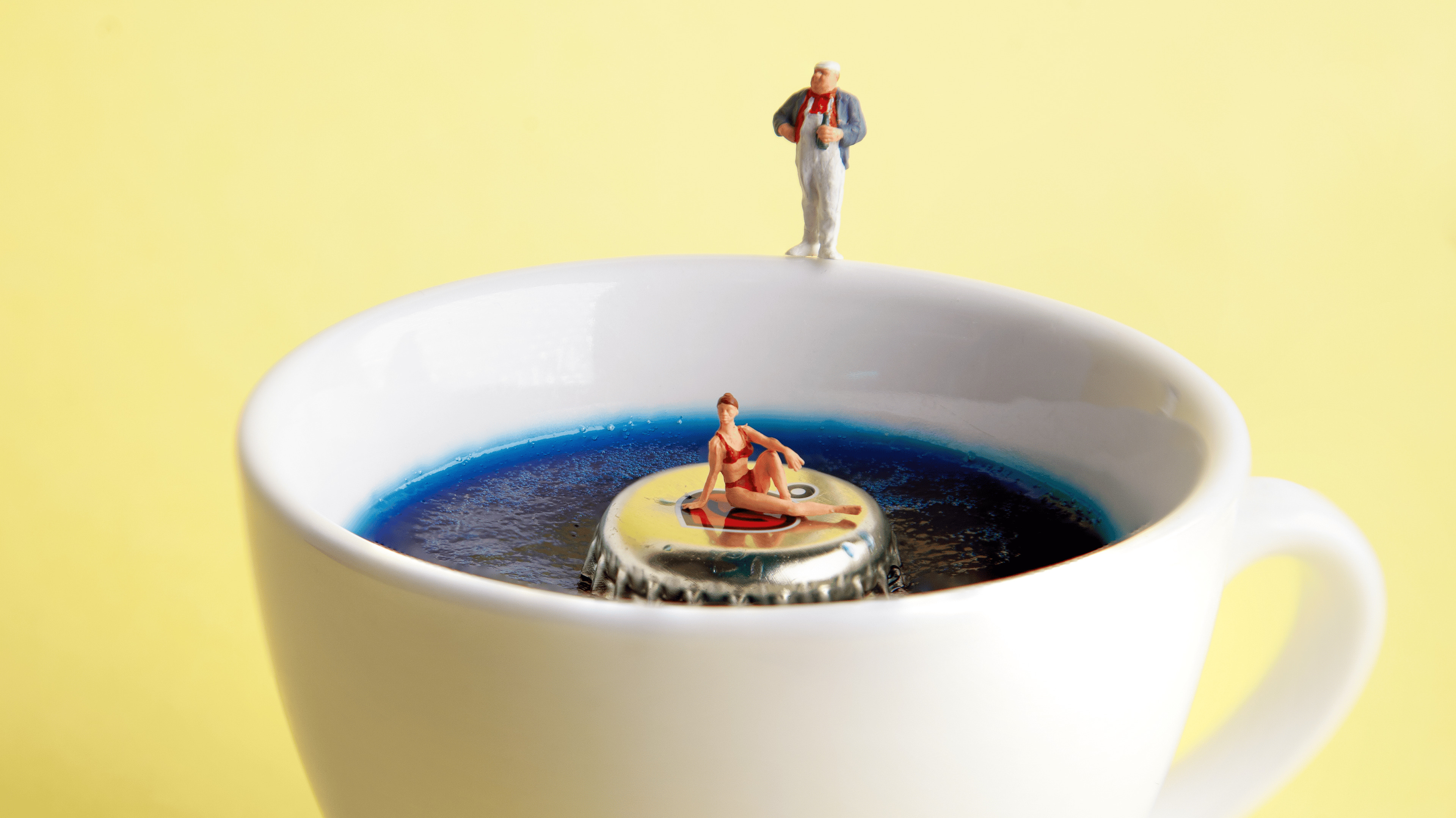 **MINIATURE WORLDS** In our fast-paced daily lives, small things are often overlooked. I aimed to bring attention to these unassuming elements. Everyday objects are humorously reimagined through the use of miniature figures sourced from the model building scene. This photo series comprises seven images, each depicting a commonplace item repurposed in a humorous manner. The images were captured using the Canon 5D Mark III, Canon EF 24-105mm f/4L IS II USM, a tripod, and a light panel. Photoshop was utilized for image editing.